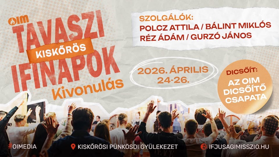 Tavaszi Ifinapok 2026-03-30 Kiskőrösi Pünkösdi Gyülekezet, 2026. április 24. 16:00 - 19:00 Facebook esemény