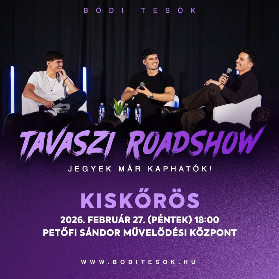 Tavaszi Roadshow – Bódi Tesók 2025-12-10 Kiskőrös, Petőfi Sándor Művelődési Központ, 2026. február 27. 18:00 - 20:00 Facebook esemény