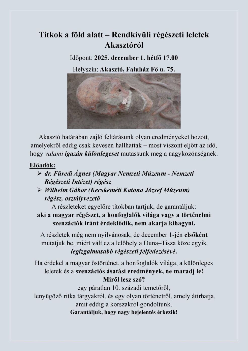 Akasztó, Faluház, Fő út 75., 2025. december 1. 17:00 - 18:00