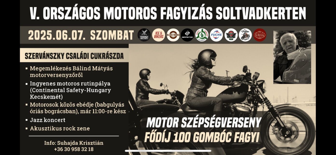 Sokan érdeklődtetek, ezért idén is megrendezésre kerül az Országos Motoros Fagyizás! Ami biztos, hogy megemlékezünk Bálind Matyi bácsiról, lesz rutin pálya, amit Honda Hornetekkel ingyenesen lehet kipróbálni, bográcsos babgulyás, jazz és rock zene. Motor múzeum és egyéb kapcsolódó rendezvények a környéken és persze rengeteg fagyi. A motor szépségverseny győztese 100 gombóc fagyival lesz gazdagabb, amit helyben el is fogyaszthat. Persze el is viheti akár vásárlási utalvány formájában. A programok és egyéb kapcsolódó rendezvényekről folyamatosan tájékoztatunk benneteket.