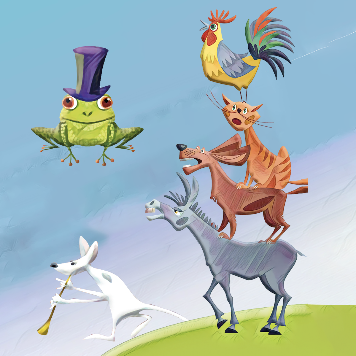 „Gyere velünk Brémába, csapj fel te is utcai muzsikusnak!” – szólt a kiskakas és a szamár. A népmese közben régi magyar táncokból hallhatunk zenei részleteket, ahol még a zsiványok is táncra perdülnek.