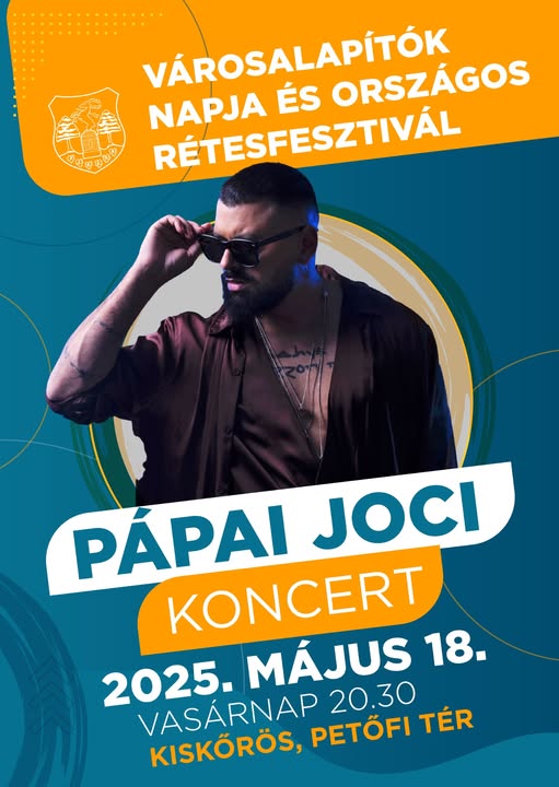 Városalapítók Napja és Országos Rétesfesztivál – Pápai Joci koncert 2025-04-22 Kiskőrös, Petőfi Tér, 2025. május 18. 20:30 - 22:00