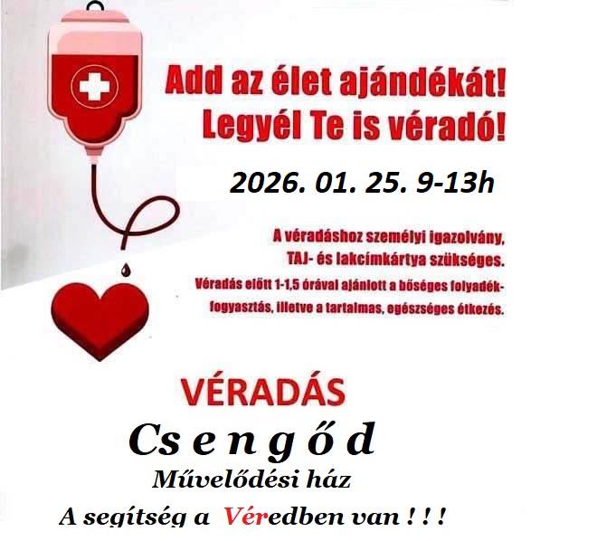 Csengőd, Dankó Pista Művelődési Ház , 2026. január 25. 09:00 - 13:00