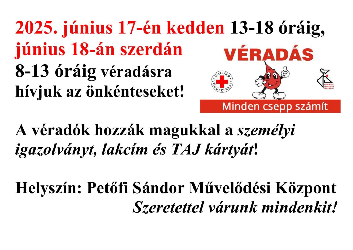 Petőfi Sándor Művelődési Központ - Kiskőrös, 2025. június 18. 08:00 - 13:00