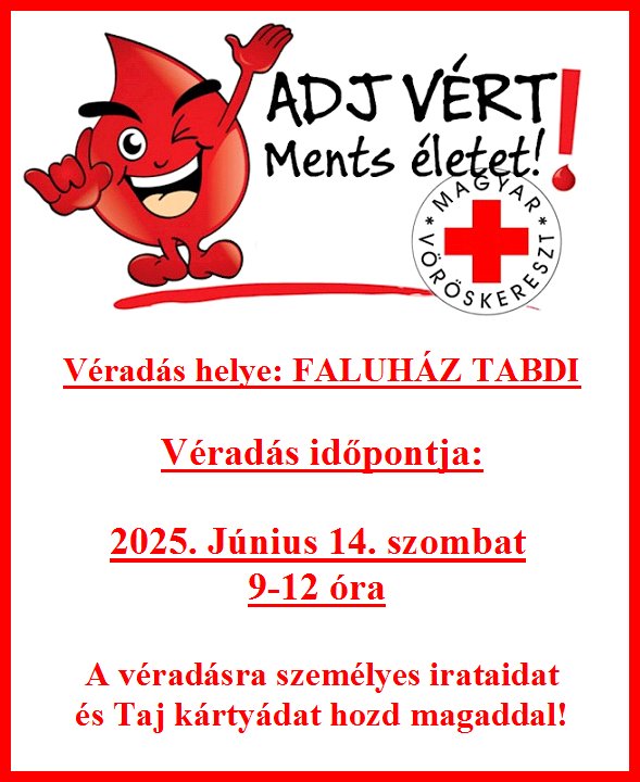 Tabdi Faluház, 2025. június 14. 09:00 - 14:00