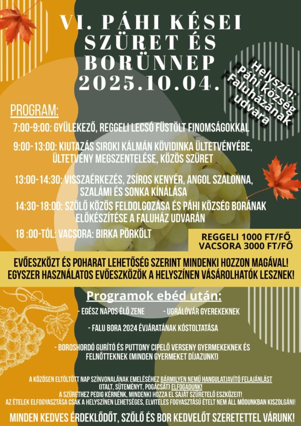 Páhi, Faluház udvara, 2025. október 4. 07:00 - 21:00
