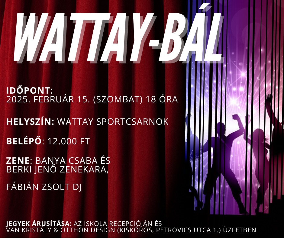 Várunk minden érdeklődőt szeretettel a Wattay bálján 2025. február 15-én szombaton 18 órakor az új Wattay Sportcsarnokban.