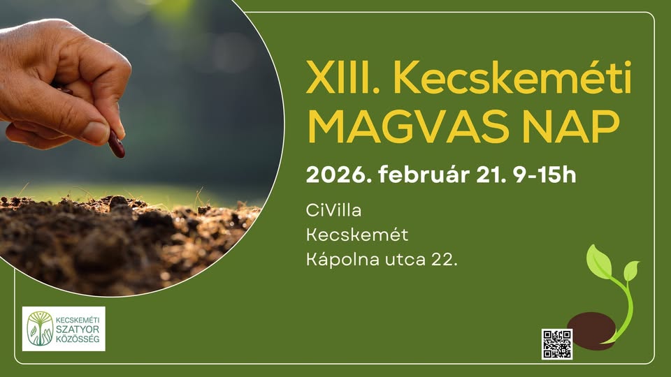 XIII. Kecskeméti Magvas Nap 2026-01-21 Kecskemét, Kápolna u. 22., 2026. február 21. 09:00 - 15:00 Facebook esemény