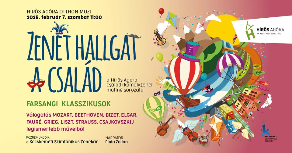 Zenét hallgat a család – Farsangi klasszikusok 2026-01-09 Kecskemét, Otthon Mozi, 2026. február 7. 11:00 - 13:00 Facebook esemény